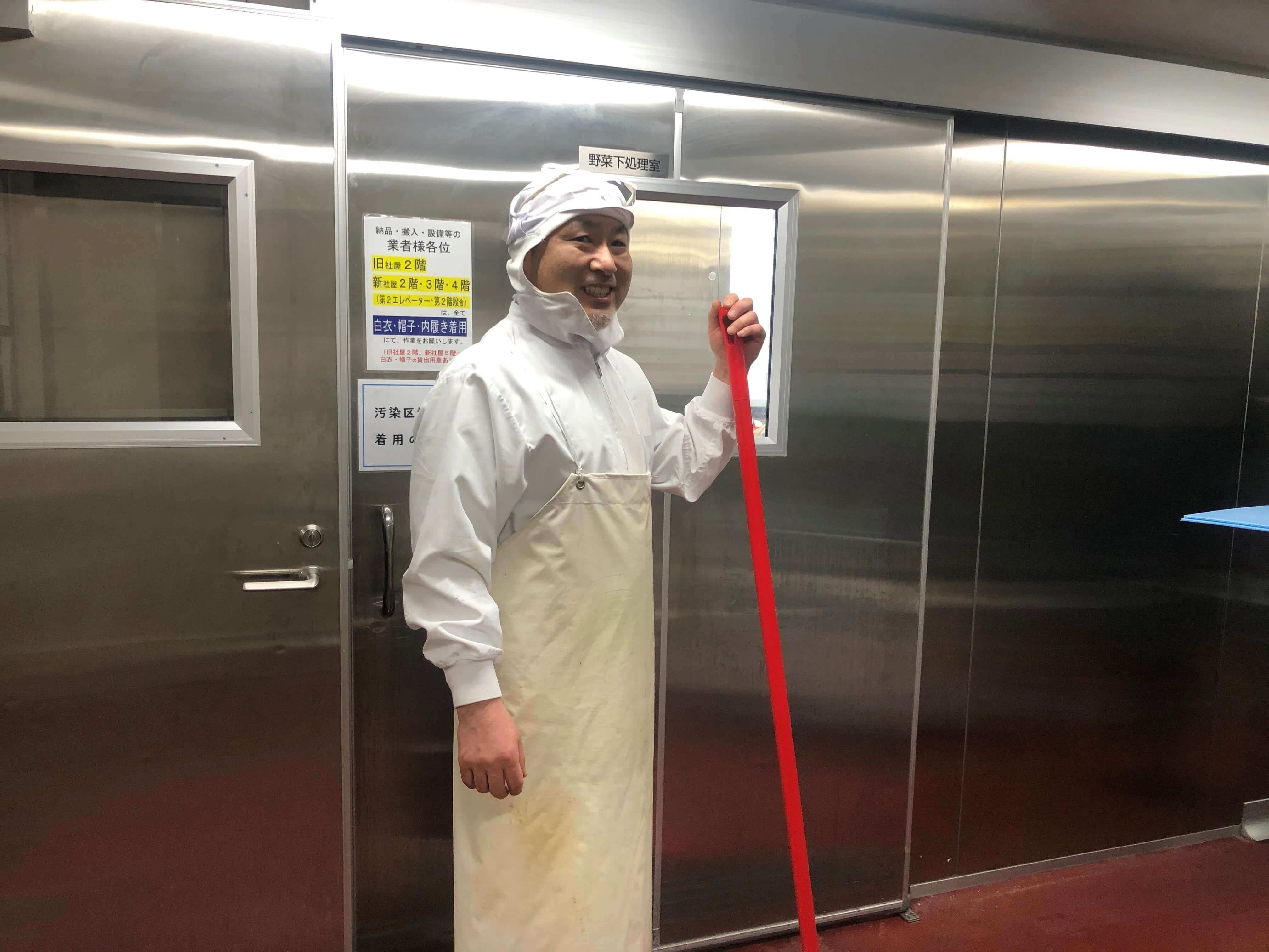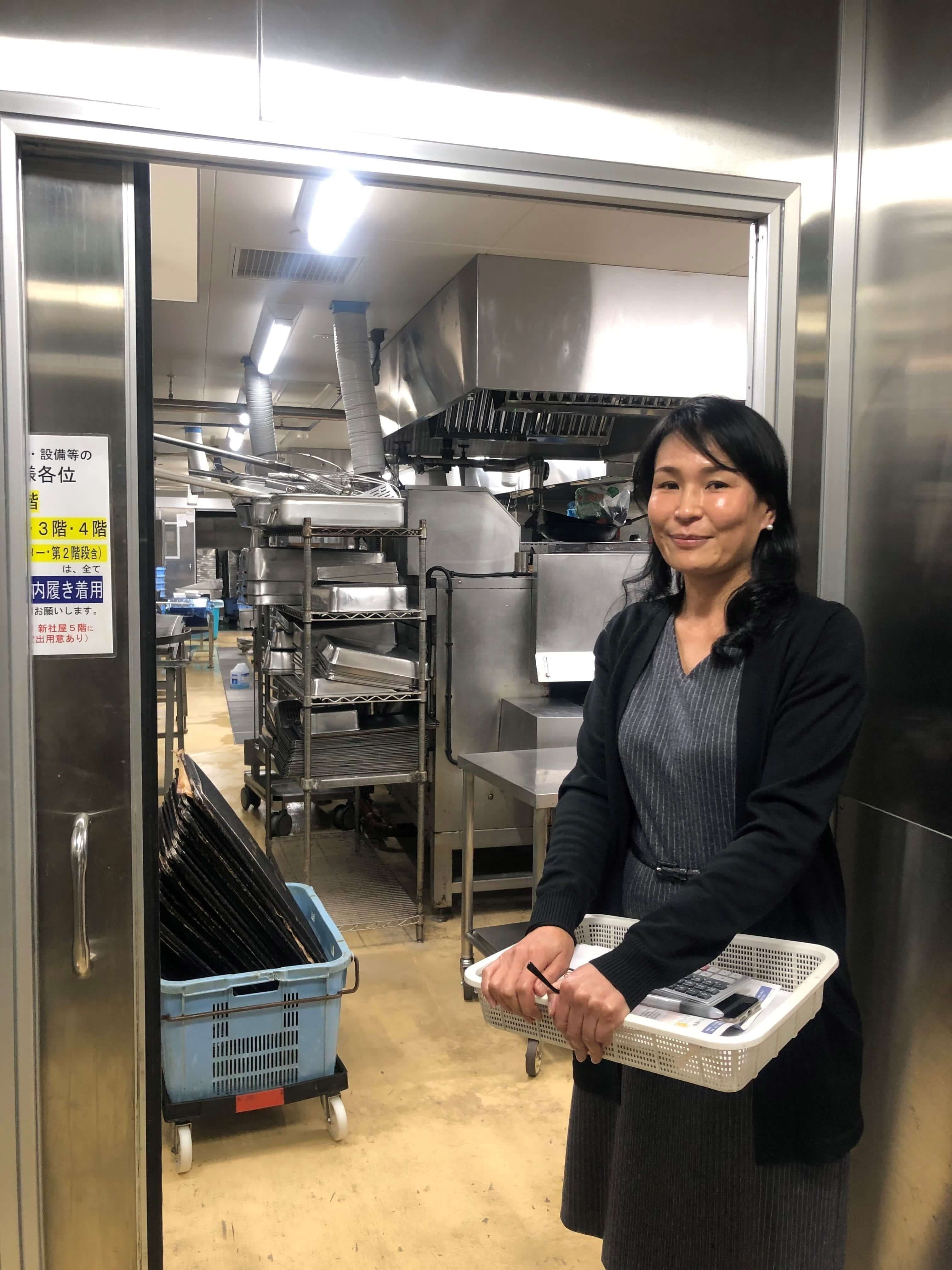 はい。この建物は2年前に新築し,2階から4階で製造しています。工場は全部で4つあり,合計で1日約16,000食製造しています。