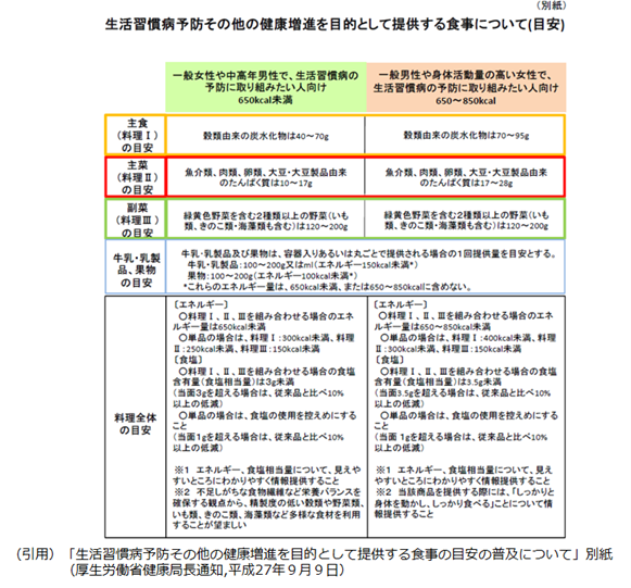 (参考資料)日本人の食事摂取基準(2025年版); 厚生労働省(平成27年9月)生活習慣病予防その他の健康増進を目的として提供する食事の普及に係る実施の手引