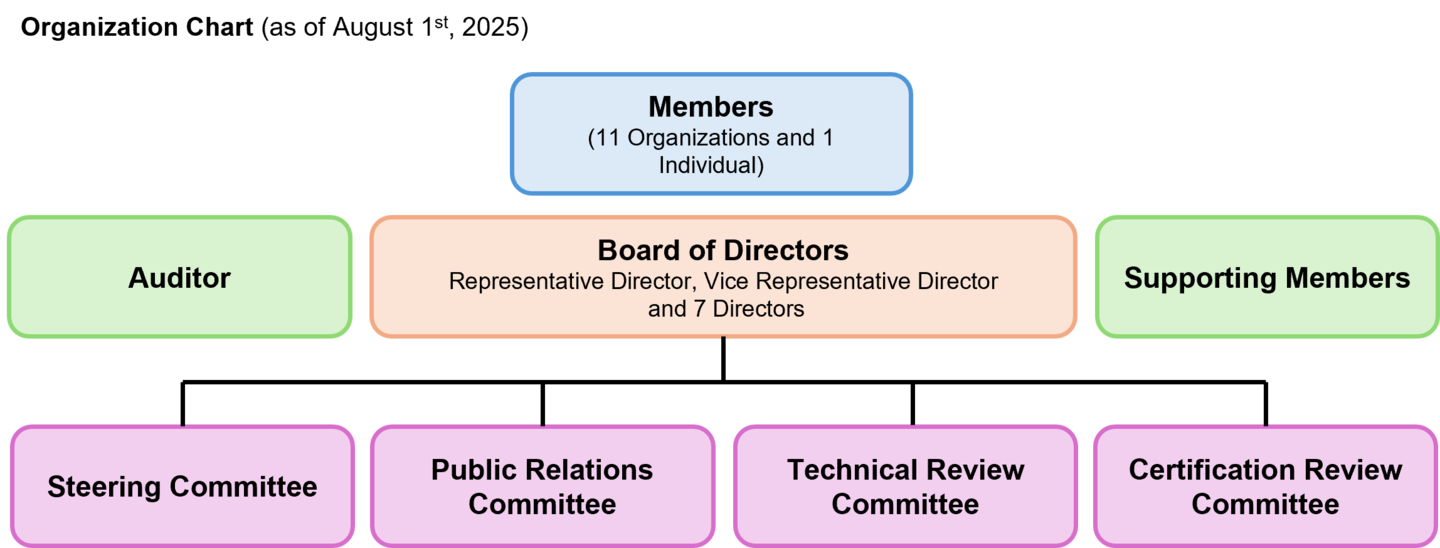 | Among the organizations previously comprising the consortium, the following became official members of the newly established general incorporated association: | |||