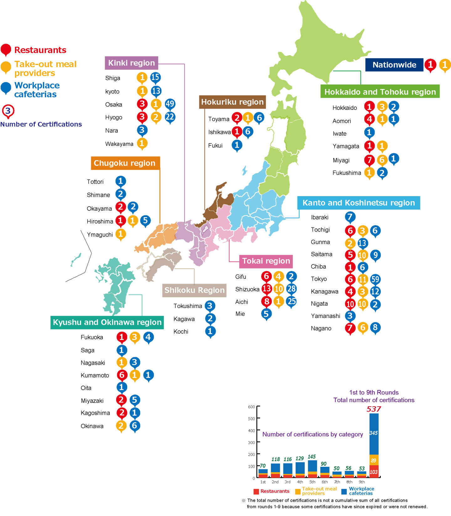 The total number of certified businesses is not equivalent to the cumulative total of certifications from the 1st to 9th rounds, as some businesses’ certifications have lapsed after their initial approval.