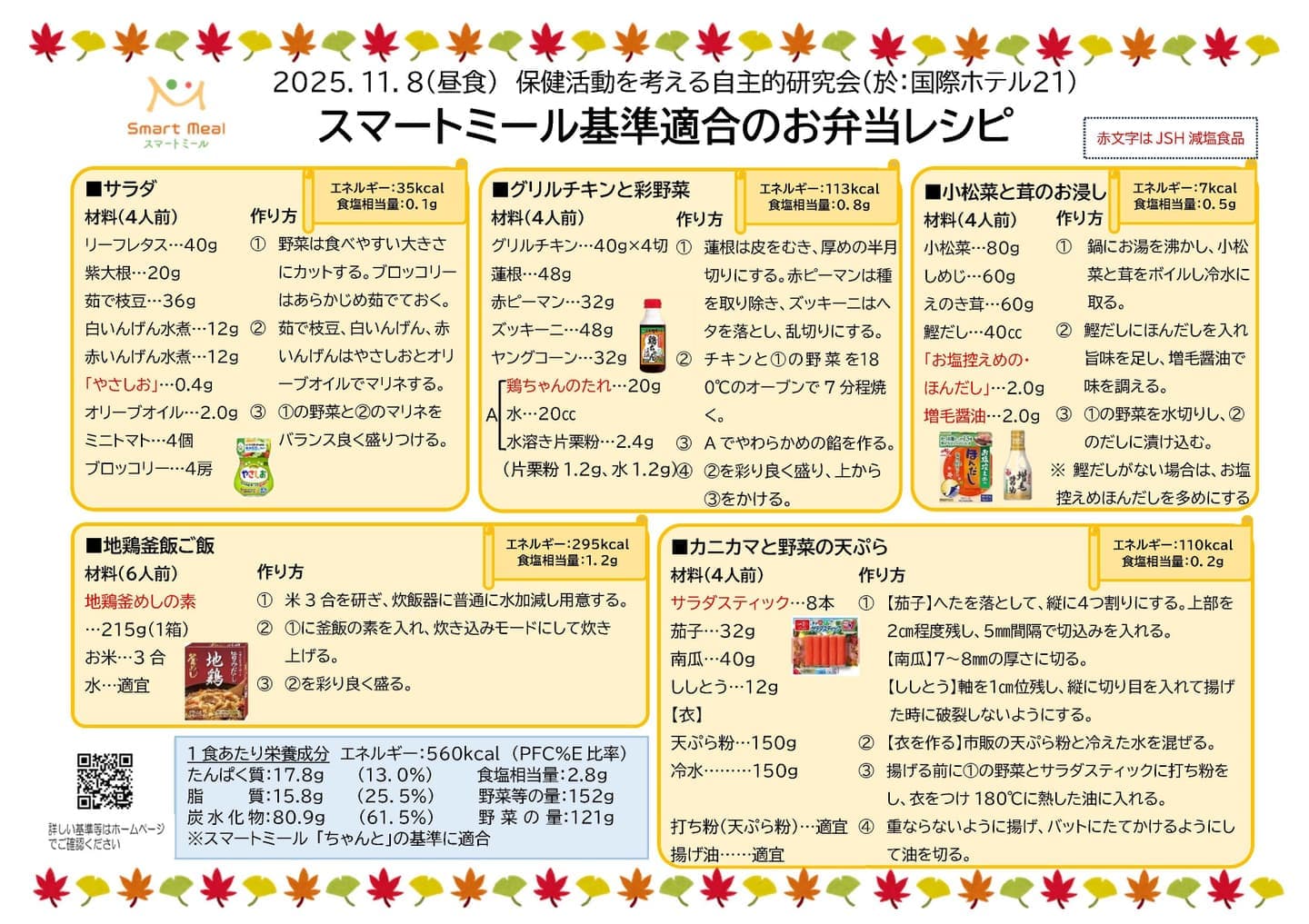 21の協力で,スマートミール基準に適合した弁当が提供されました。