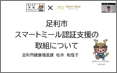 最初に,足利市健康増進課松本和佳子様より,足利市のスマートミール認証支援の取組について,ご紹介いただきました。