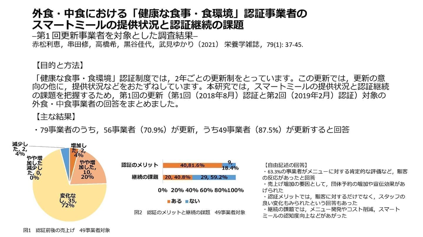 (原文)Sakaguchi K, Takemi Y, Hayashi F, Koiwai K, Nakamura M. Effect of workplace dietary intervention on salt intake and sodium-to-potassium ratio of Japanese employees: A quasi-experimental study. J Occup Health. 2021 PMCID:PMC8565653